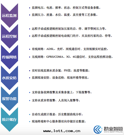 水(shuǐ)质安(ān)全(quán)、安(ān)防視頻、遠(yuǎn)程控制、運行工況等。