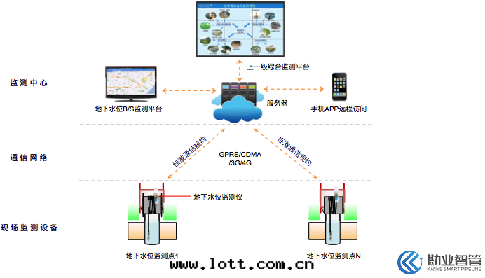 地下(xià)水(shuǐ)監測系(xì)統是(shì)掌握地下(xià)水(shuǐ)變(biàn)化(huà)规律、了(le)解(jiě)地下(xià)水(shuǐ)開(kāi)采狀況、指導地下(xià)水(shuǐ)資源保護的(de)重(zhòng)要(yào)手(shǒu)段(duàn)。地下(xià)水(shuǐ)監測系(xì)統可(kě)对(duì)地下(xià)水(shuǐ)的(de)水(shuǐ)位(wèi)、水(shuǐ)温(wēn)、水(shuǐ)质等參數进行长(cháng)期(qī)監測並(bìng)自(zì)動(dòng)存储監測數據(jù),可(kě)对(duì)地下(xià)水(shuǐ)的(de)變(biàn)化(huà)规律进行動(dòng)态分(fēn)析。地下(xià)水(shuǐ)監測系(xì)統依托既有(yǒu)的(de)GPRS/CDMA無線(xiàn)网(wǎng)絡进行建設,具有(yǒu)投資成(chéng)本(běn)低(dī)、建設速度(dù)快(kuài)、無通(tòng)信(xìn)距離限制等優點(diǎn)。系(xì)統支持(chí)水(shuǐ)利部(bù)地下(xià)水(shuǐ)通(tòng)信(xìn)规約,已在(zài)各(gè)地的(de)國(guó)家(jiā)地下(xià)水(shuǐ)監測工程中(zhōng)廣泛應(yìng)用(yòng)。